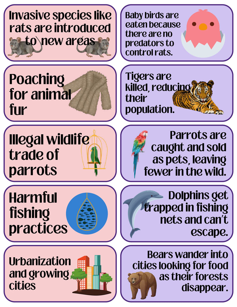 Understand causes of endangerment (habitat loss, pollution, poaching, climate change).
