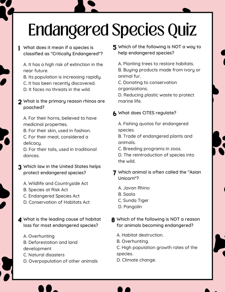 Help kids understand one of the most important topics of our time—endangered species and conservation. With this printable lesson guide, students will explore why species become endangered, how ecosystems are affected, and what we can do to make a difference.
